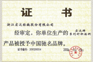 變更設(shè)立浙江宏達(dá)經(jīng)編股份有限公司;公司通過ISO14001認(rèn)證,被認(rèn)定為國(guó)家重點(diǎn)高新技術(shù)企業(yè);宏達(dá)牌經(jīng)編面料被認(rèn)定為浙江省名牌產(chǎn)品