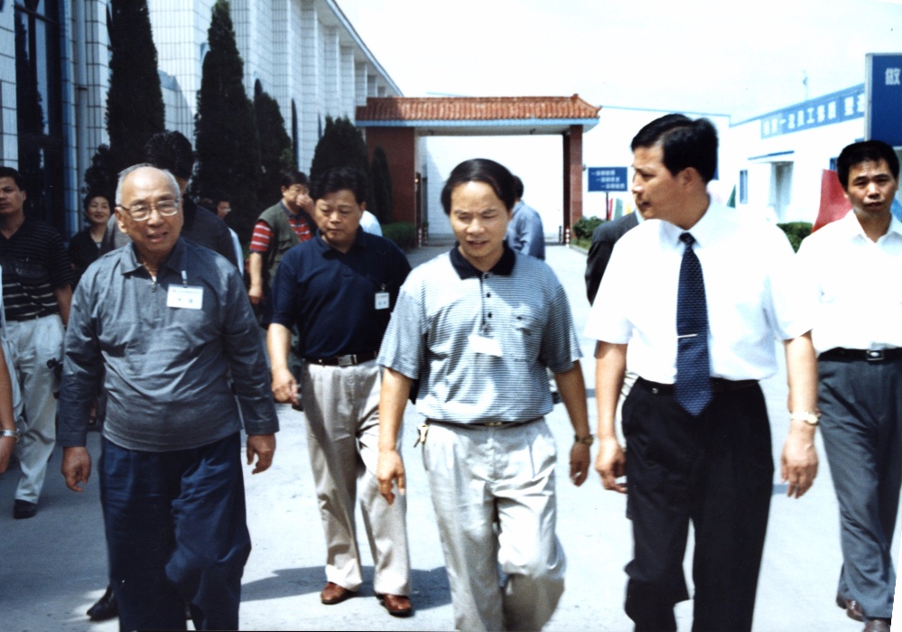 海寧市人大常委會主任(時任中共海寧市常務副市長)徐輝陪同前往考察的香港實業家查濟民先生在宏達經編實業公司
