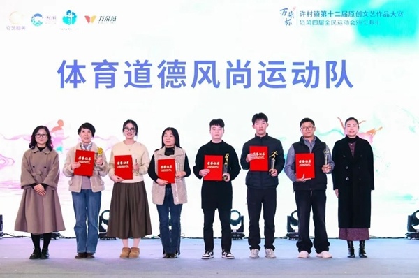 日,許村鎮(zhèn)第二十屆原創(chuàng)文藝作品大賽暨第四屆全民遠動會頒獎典禮上,宏達高科羽毛球隊榮獲許村鎮(zhèn)全民運動會道德風尚運動隊。