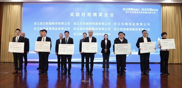 會議解讀了有關(guān)營商環(huán)境優(yōu)化、產(chǎn)業(yè)高質(zhì)量發(fā)展支持政策和企業(yè)上市騰飛倍增等方面的意見方案;舉行了政策獎勵兌現(xiàn)儀式;進行了項目簽約。宏達高科副總經(jīng)理孫云浩代表公司上臺領(lǐng)取獎勵兌現(xiàn)獎牌。