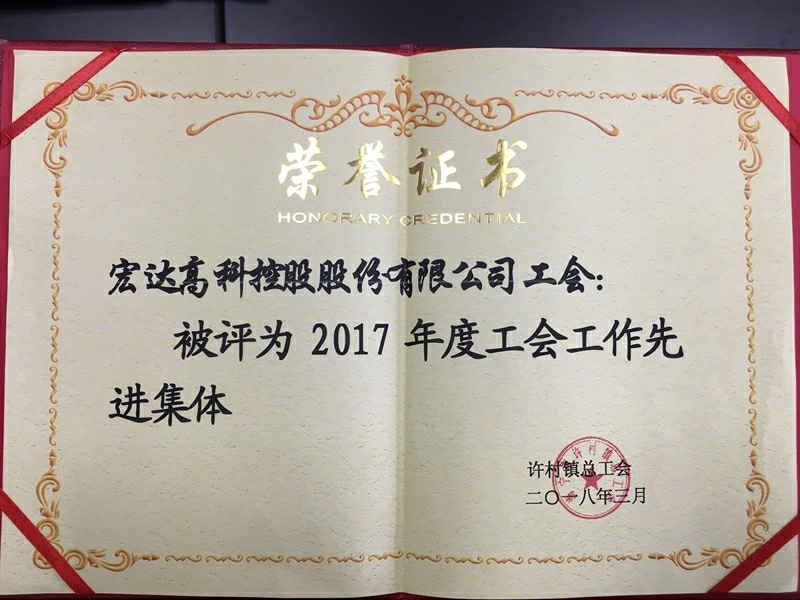3月28日下午,許村鎮總工會召開第十一屆八次全委擴大會議。會上總結了許村鎮工會2017年度工作總結,對2017年度工作先進單位進行表彰,宏達高科工會榮獲2017年度工會工作先進集體。