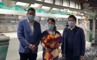 4月29日,許村鎮工會主席俞建強來到宏達高科慰問浙江省勞模趙巧娟。