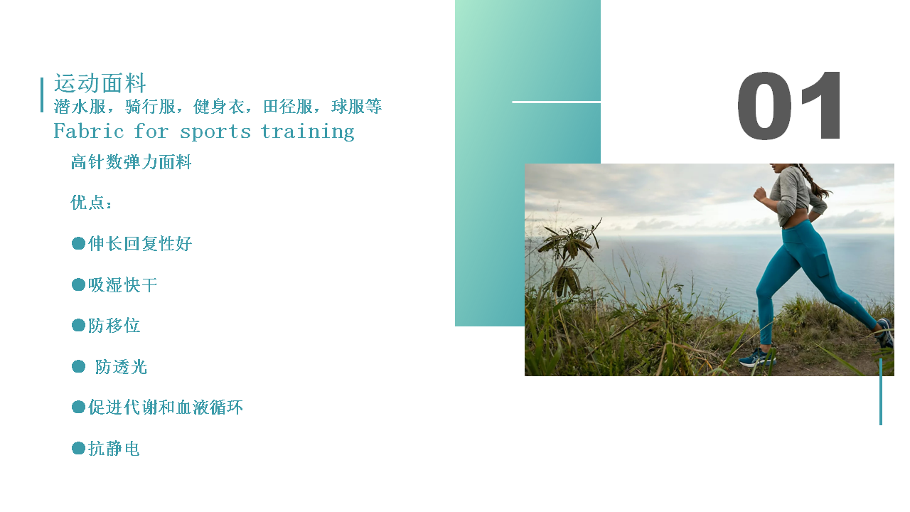 公司創(chuàng)造性的應(yīng)用進(jìn)口生產(chǎn)設(shè)備,精心采購國際優(yōu)質(zhì)原材料和染 化料,所生產(chǎn)的彈性和尼龍面料制作各種泳衣、潛水服、內(nèi)衣、 文胸、睡衣的理想面料,具有穿著舒適,觸感輕柔、恢復(fù)性好易 吸汗、不產(chǎn)生靜電等優(yōu)點(diǎn),系列產(chǎn)品被評(píng)為“浙江省高質(zhì)量科技 產(chǎn)品”。生產(chǎn)的網(wǎng)眼、起絨類經(jīng)編面料,更是運(yùn)動(dòng)衣、體操衣、 滑雪衣、球類衣等的上乘面料之選。目前,公司生產(chǎn)的系列面料 已通過Oeko-Tex Standard 100生態(tài)紡織品認(rèn)證,品質(zhì)達(dá)到 國際先進(jìn)水平,批量配套阿迪達(dá)斯等世界著名品牌,遠(yuǎn)銷歐美。